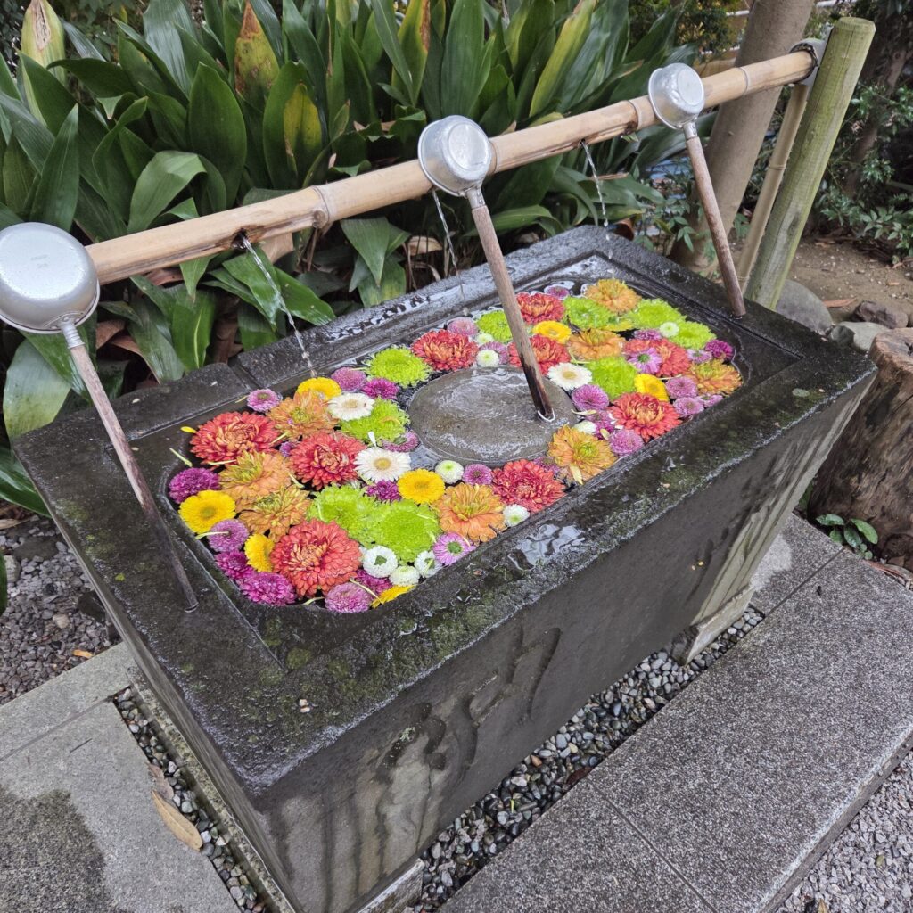 毎年手洗い場の花手水がとても美しくて🌸、今年も拝見出来た事に感謝をしたいと思います✨。